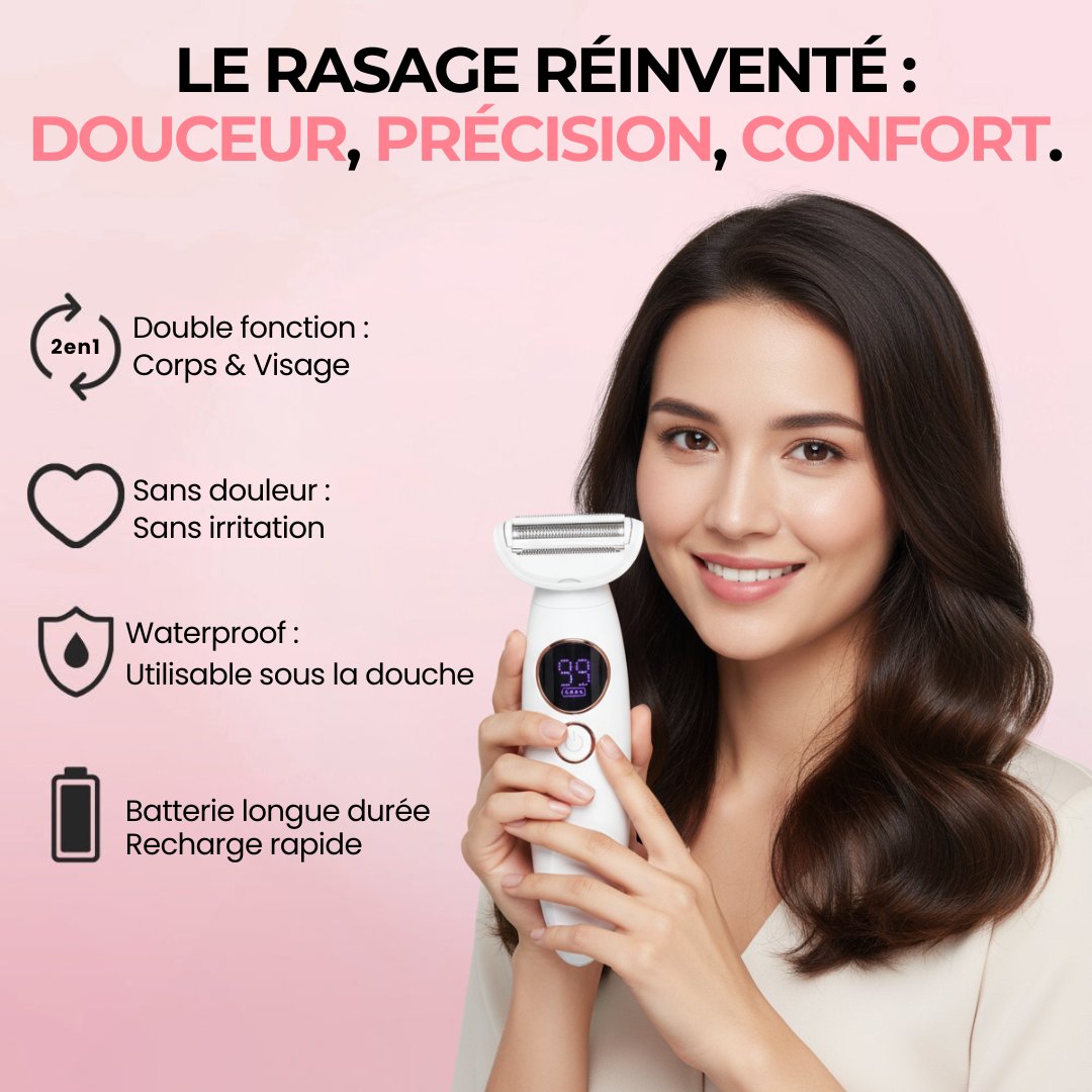 Contrairement à la cire ou aux rasoirs jetables qui agressent la peau, il coupe les poils en douceur, sans tiraillement ni irritation. Sa technologie à double tête glisse délicatement sur la peau, même sur les zones sensibles. Vous obtenez un résultat net, rapide et confortable, sans douleur.
